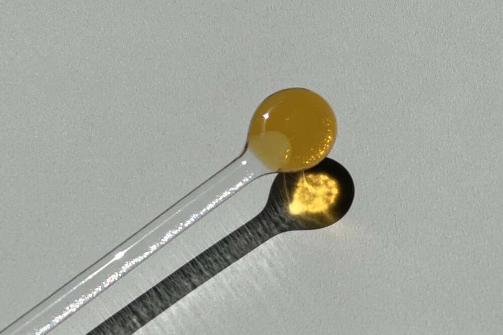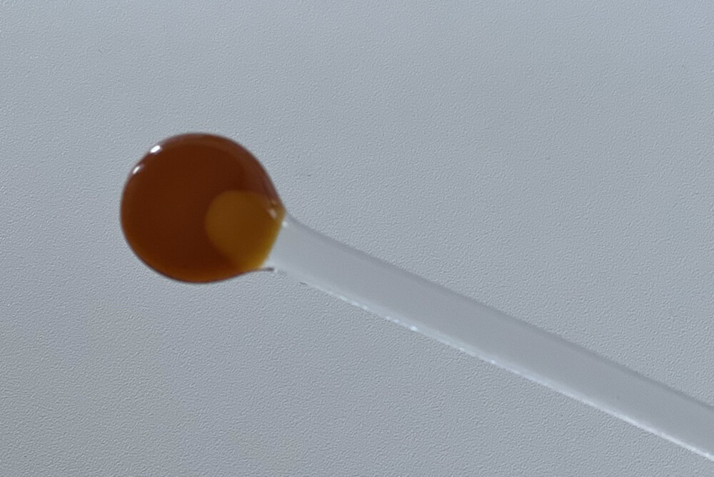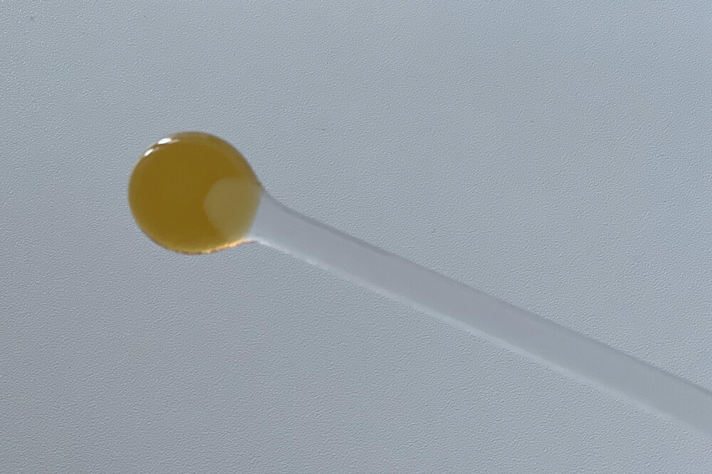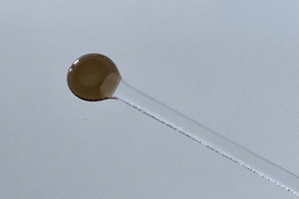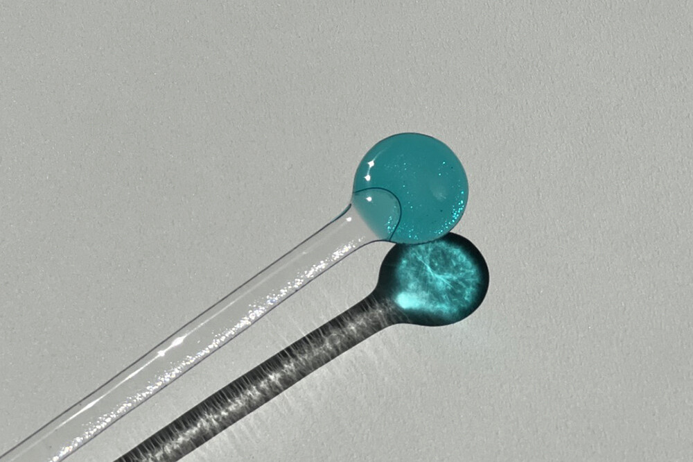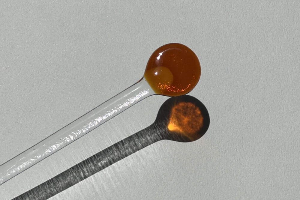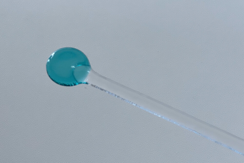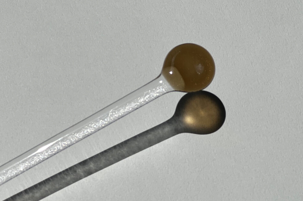 길고 투명한 막대의 한 쪽 끝, 작고 둥근 색유리를 붙여 마치 막대사탕 같은 모습입니다.