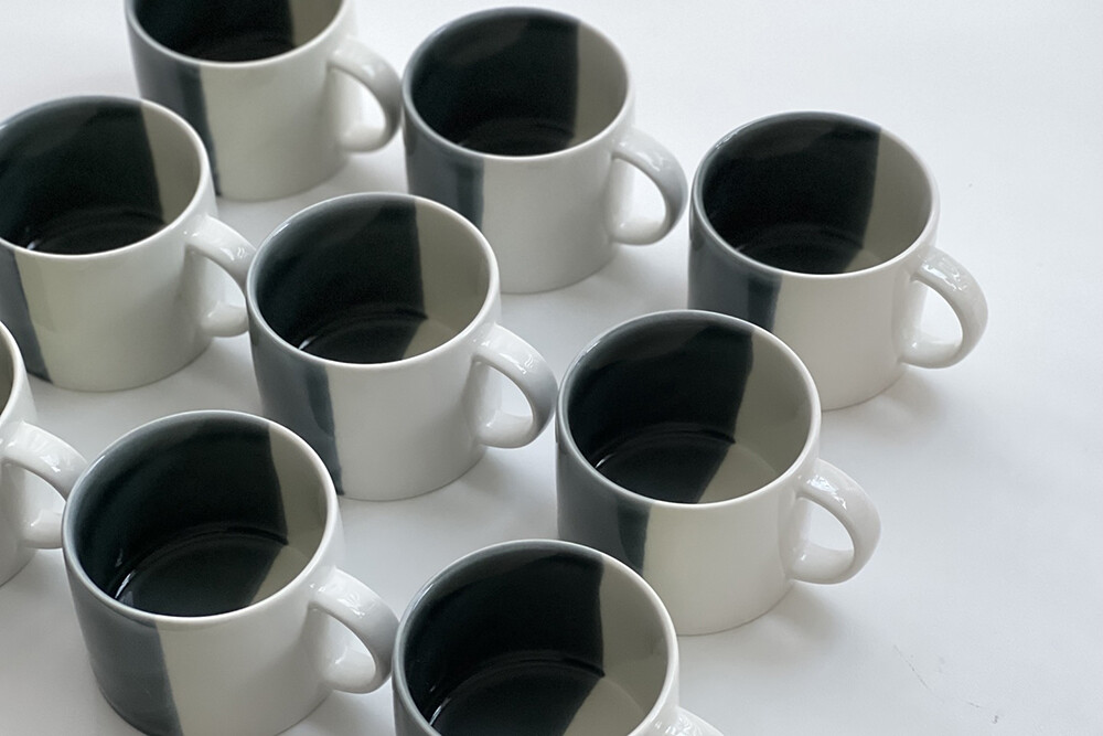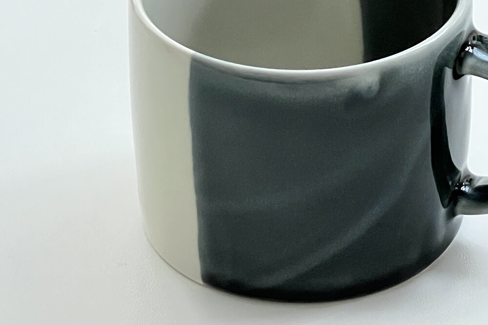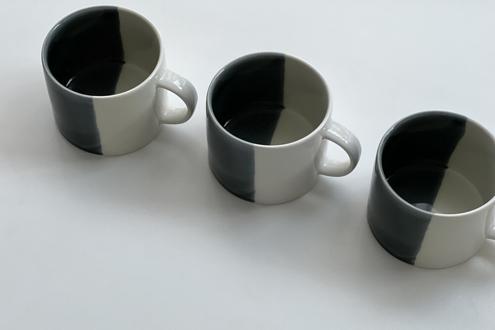 수작업으로 입힌 검정 유약은 하나하나 다른 너비와 각도로 시유하였습니다.