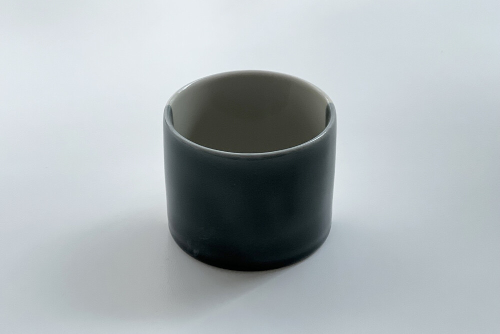 군더더기 없는 모양의 기물에 투명함이 느껴지는 검정 유약을 입혔습니다.