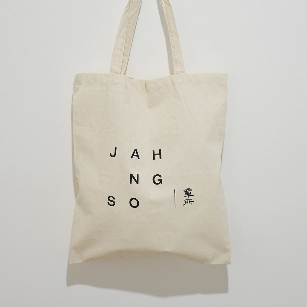 한 면에는 장소의 로고가 인쇄되어 있고, 다른 한면은 무지입니다.