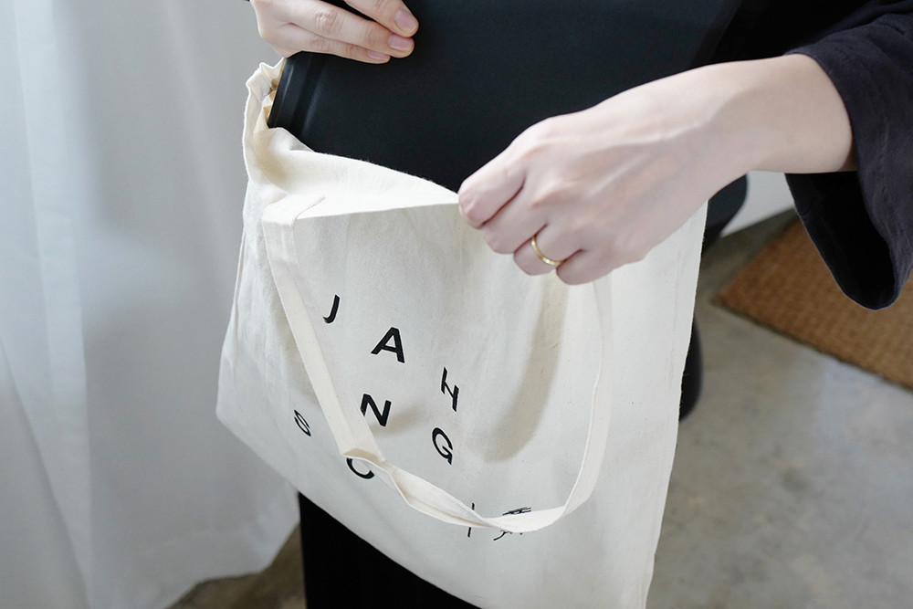 전체 끈 길이는 약 60cm의 에코백입니다.