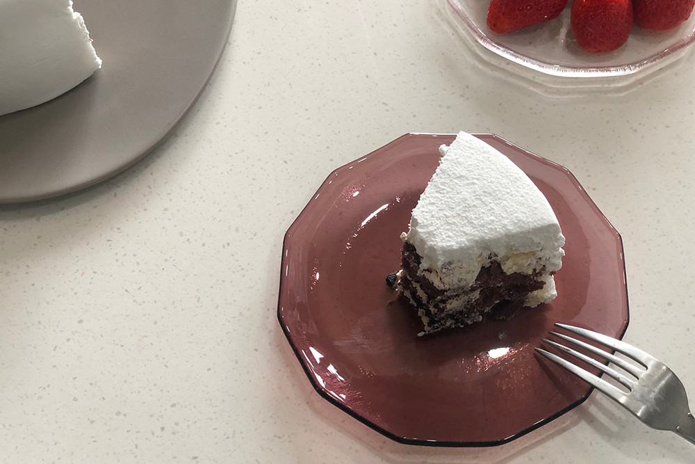 케이크 한 조각을 담았을 때 아주 예쁜 크기이지요.