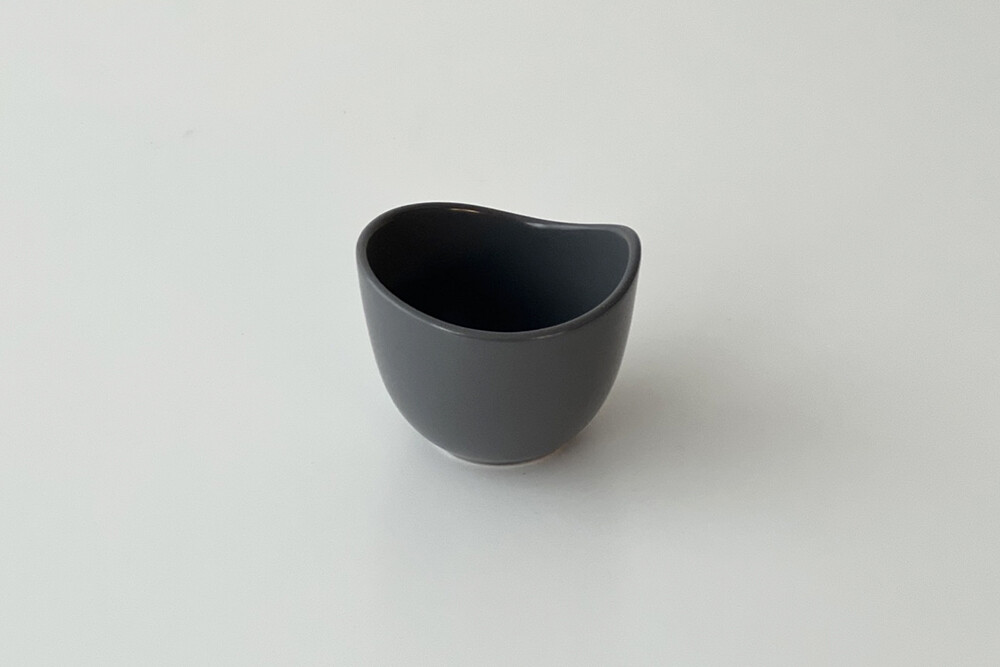 어두운 백토를 사용하여 형태를 만들고 반매트 질감의 유약을 시유하여 완성하였습니다.