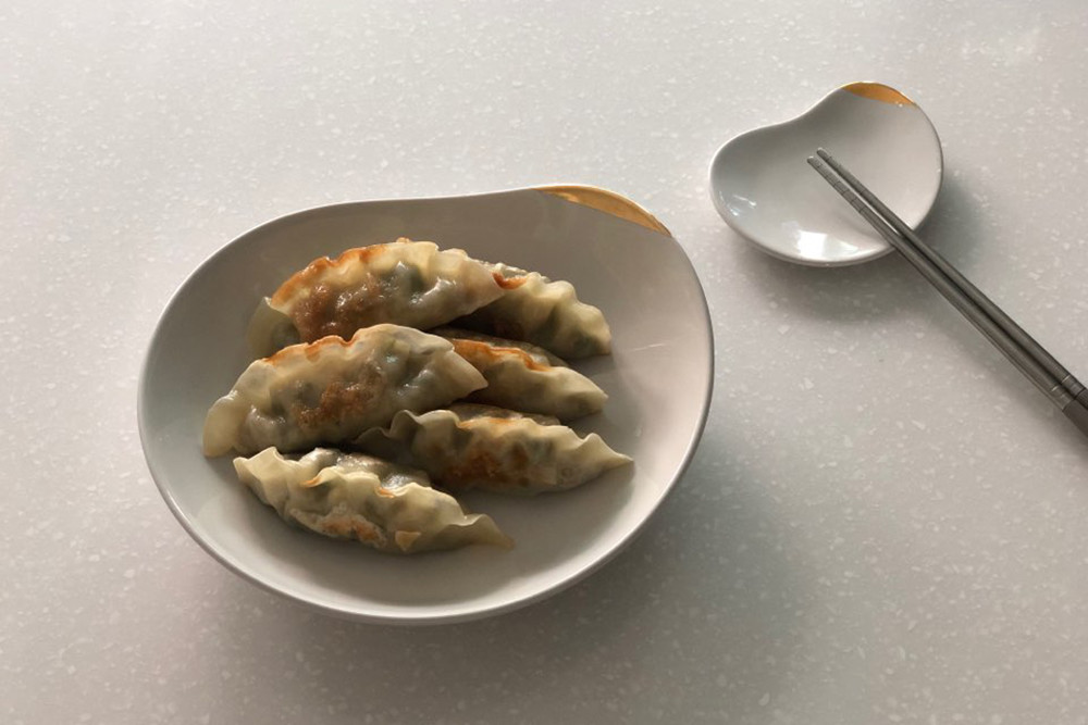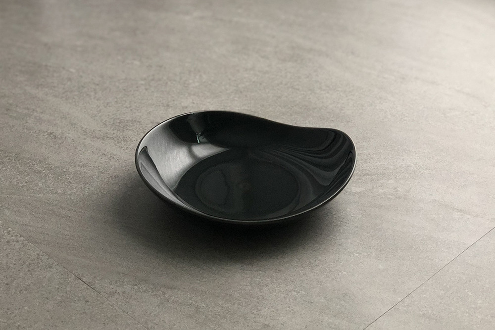 플레이트 한 쪽, 곡선 커브의 끝지점에 금을 입혀 유광에 어울리는 반짝임을 더하였습니다.