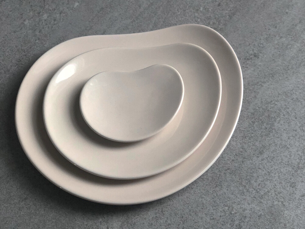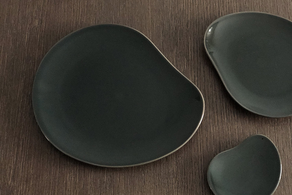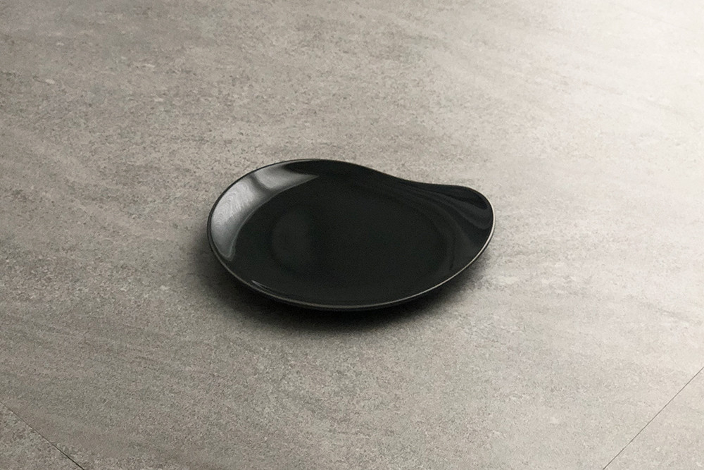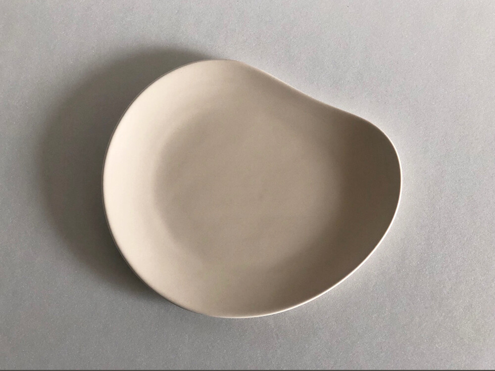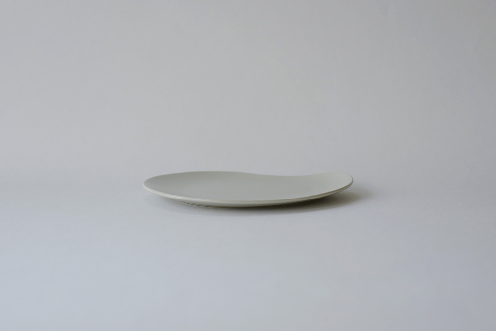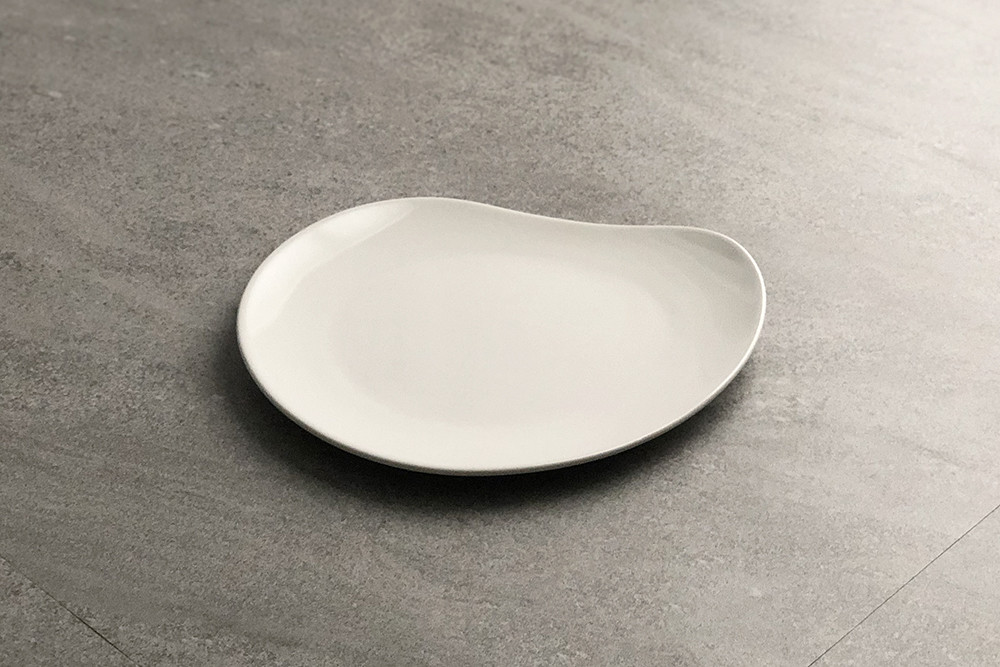비대칭의 타원형인 플레이트는 평평한 굽과 얕은 깊이를 가진 기물입니다.