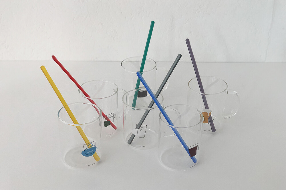 CUPS mug 4종, CUPS 2종 중 하나와 각각의 유리컵에 어울리는 젤리스틱 머들러 하나를 매치하였습니다.