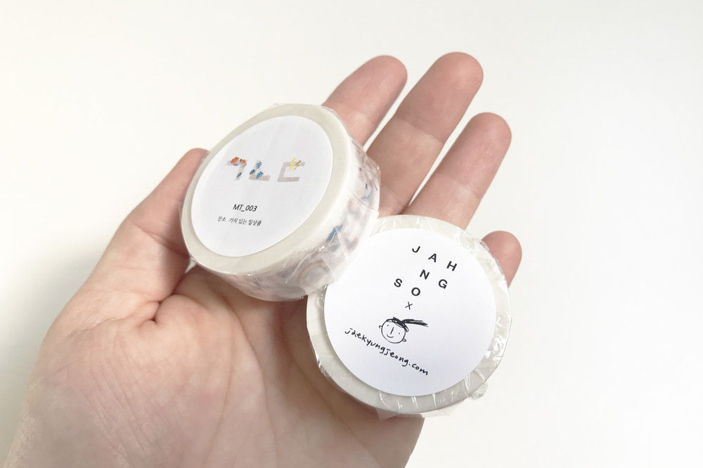 이 제품은 콜라보레이션 제품으로 장소 jahngso와 정재경 작가의 로고가 함께 들어가 있습니다.