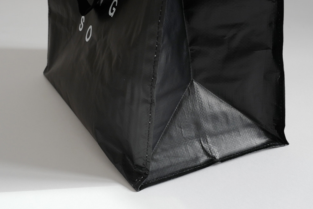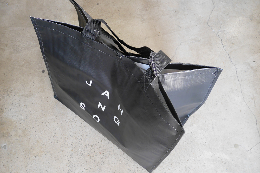 대형 장바구니에 많이 사용되는 타포린 소재이며 (흔히 돗자리에 사용되는 재질)