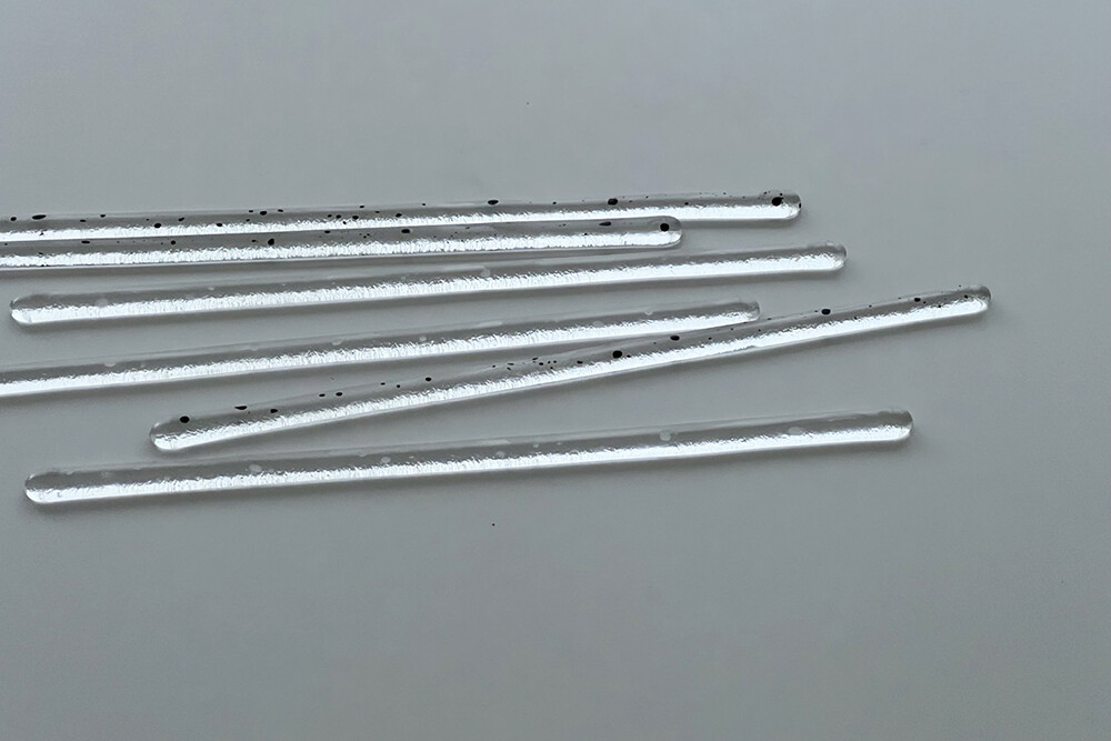 투명한 스틱 위 불규칙한 크기의 색유리 조각을 더해 작업하였습니다.