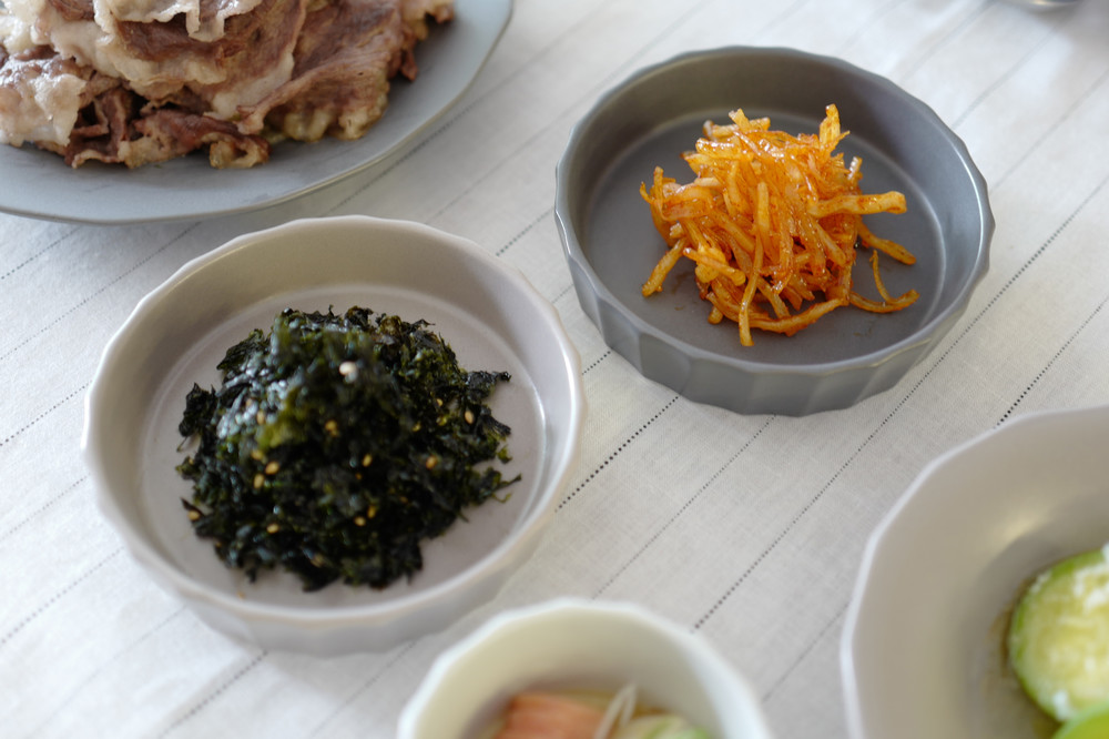 유윤 식기는 크게 물결 무늬와 각 무늬 접시로 구분되는데, 한식이나 양식을 구분하지 않고 취향과 필요에 따라 섞어 사용해도 매우 잘 어울립니다.