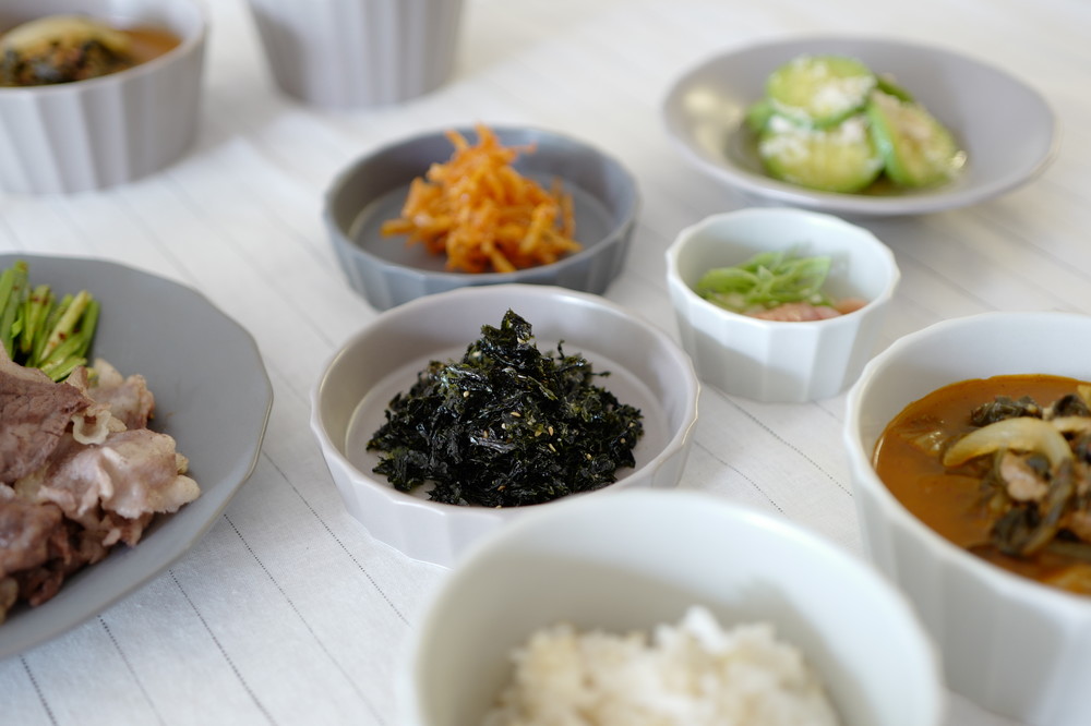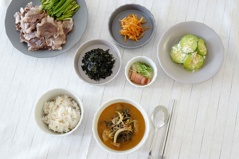 위의 사진은 브라운그레이 식기로만 이루어진 세트입니다.